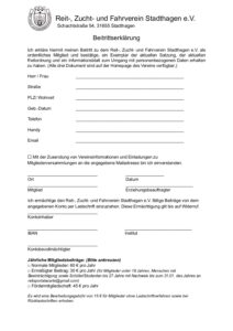 Mitgliedschaft Sie möchten Teil des RZFV Stadthagen werden? Wir freuen uns über neue Mitglieder – egal ob aktiv oder fördernd. Sprechen Sie uns an oder nutzen Sie unser Kontaktformular. Hier erhalten Sie Informationen zum Umgang mit Ihren personenbezogenen Daten: Schreibe einen Kommentar Antwort abbrechenDu musst angemeldet sein, um einen Kommentar abzugeben.